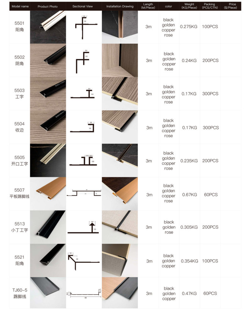 Алюминиевый профиль для настенных панелей, 5 мм
