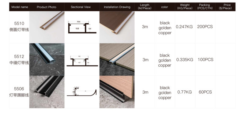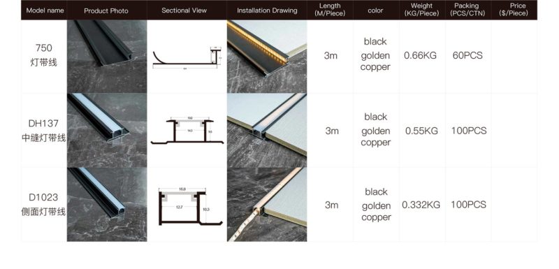Алюминиевый профиль для настенных панелей c освещением, 8 и 9 мм